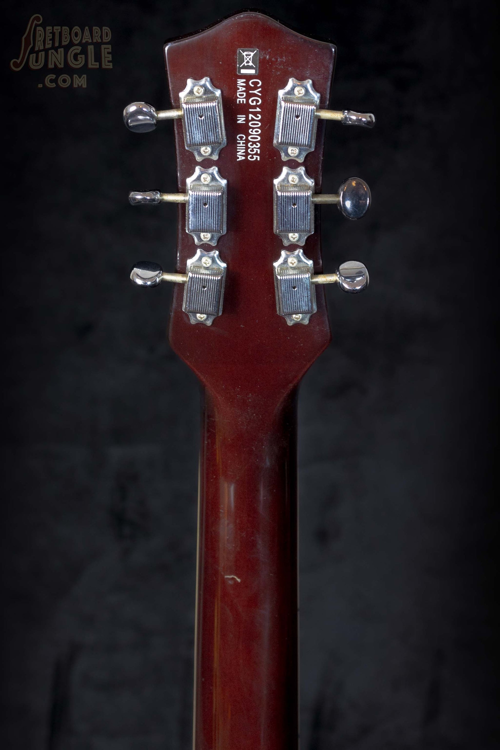 This guitar features a chambered basswood body, mahogany neck and rosewood fretboard, all sealed up in a durable polyurethane finish. The frets are in excellent condition, with minimal wear.